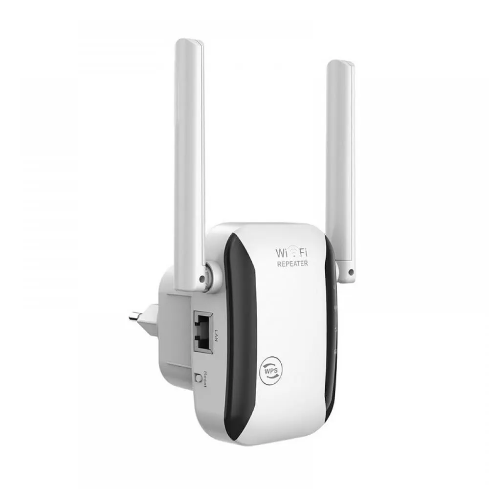 Eliminate "dead zones" and enjoy seamless connectivity throughout your home with this High-Performance WiFi Range Extender. Designed to capture your existing router's signal and rebroadcast it to those hard-to-reach areas, this device ensures that your basement, attic, or backyard finally has the high-speed internet it deserves. Whether you are streaming 4K video, gaming online, or working from home, this booster provides a stable and ultra-fast connection for all your devices.Equipped with Dual-Band technology, the extender operates on both 1$2.4\text{GHz}$ and 2$5\text{GHz}$ frequencies to minimize interference and maximize throughput.3 The $2.4\text{GHz}$ band offers broad coverage for everyday tasks like browsing and smart home devices, while the $5\text{GHz}$ band delivers lightning-fast speeds for bandwidth-heavy activities. With four high-gain external antennas, the signal penetrates walls and floors more effectively than standard internal-antenna models.Setting up the device is incredibly simple, requiring no technical expertise. With the One-Touch WPS button, you can sync the extender to your router in seconds. The compact, wall-plug design blends discreetly into any room’s decor without blocking adjacent outlets. Additionally, an integrated Ethernet port allows you to connect wired devices—such as smart TVs or game consoles—directly to the extender for a faster, lag-free "wired" experience in a wireless zone.4